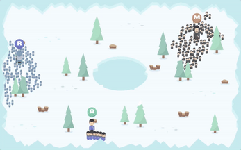Jon Snow Team and White Walkers Team are from GoT and they are not very friendly. They want to kill each other. When special button was pressed they spawn 18 fighters, they can be spawned once per 10 seconds. Both start with 90 team members.